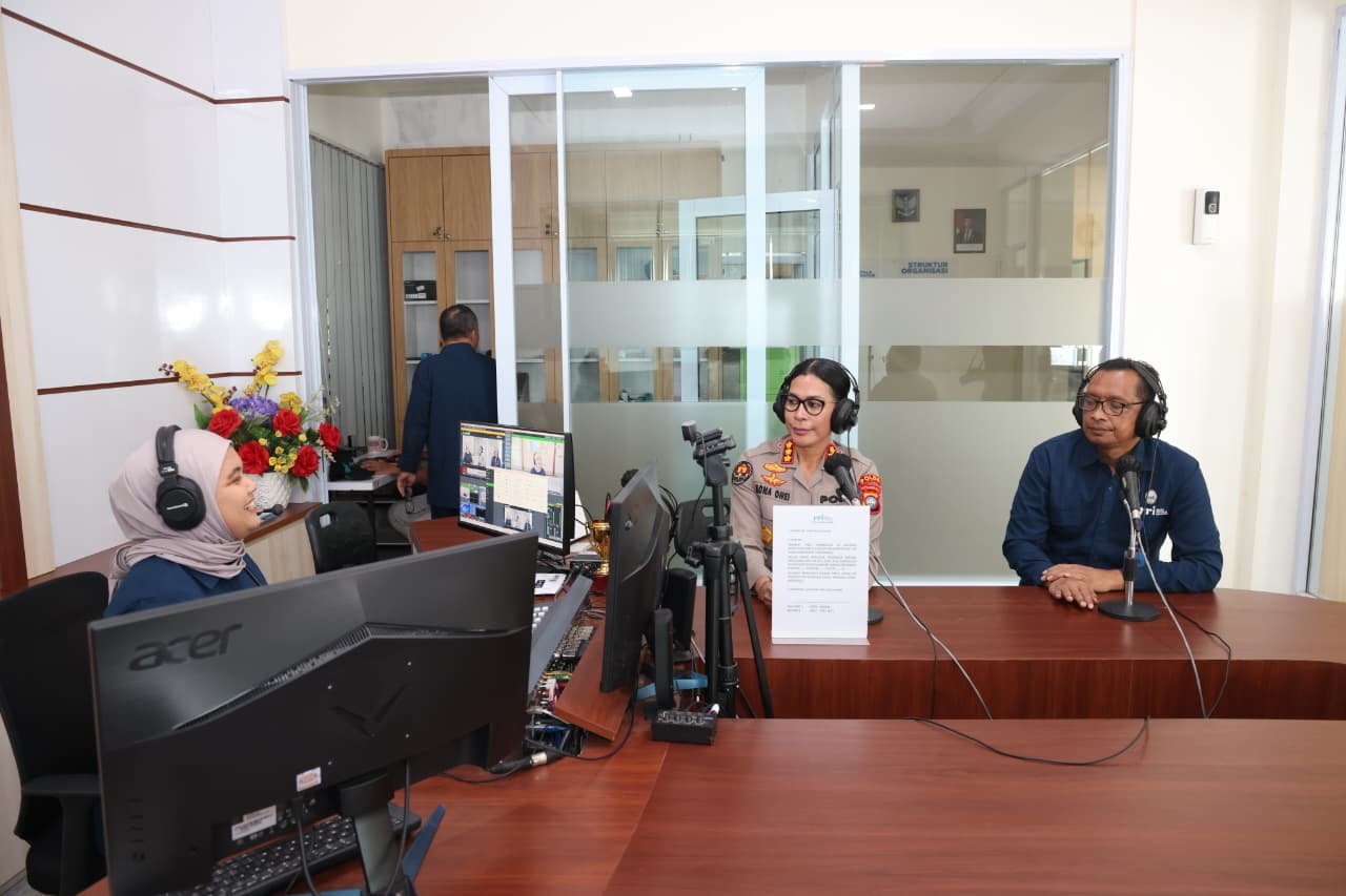 Foto : Nona Pricillia Ohei melaksanakan silaturahmi sekaligus dialog interaktif melalui siaran Pro 1 Radio Republik Indonesia Batam. Focusitm.news | Batam — Kepala Bidang Humas Polda Kepulauan Riau Kombes Pol Dr. Nona Pricillia Ohei melaksanakan silaturahmi sekaligus dialog interaktif melalui siaran Pro 1 Radio Republik Indonesia Batam. Kegiatan ini disambut oleh Pelaksana Tugas Kepala Stasiun RRI Batam Sutarno bersama jajaran penyiar RRI, Selasa (13/1/2026).