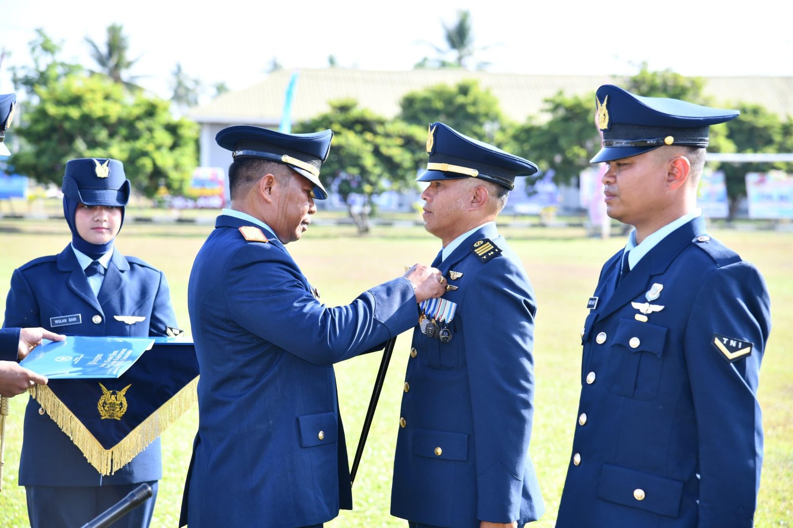 Komandan Lanud Raden Sadjad Marsekal Pertama TNI Onesmus Gede Rai Aryadi, S.E., M.M., M.Han., bertindak sebagai inspektur upacara diikuti seluruh personel Lanud RSA dan satuan jajaran.