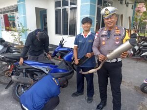 Ia menjelaskan, penertiban dilakukan melalui patroli rutin, razia di sejumlah titik rawan, serta penindakan langsung terhadap pengendara yang kedapatan menggunakan knalpot tidak sesuai spesifikasi teknis kendaraan.