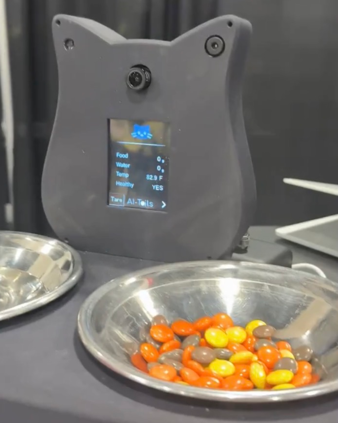 Di Las Vegas Consumer Electric Show, 7-10 Januari 2026 ada satu inventor memperlihatkan mesin prototype pemberi makan kucing berbasis AI.