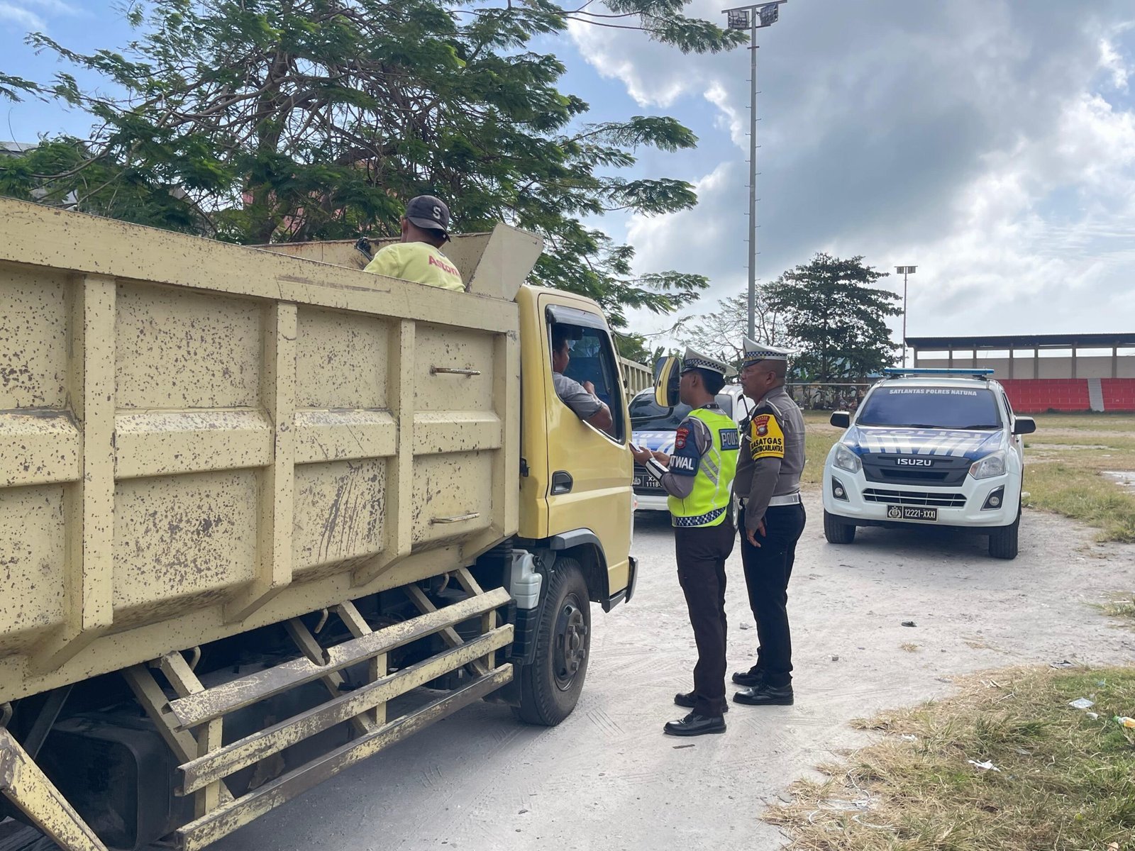 Pemeriksaan meliputi kendaraan roda dua, roda empat, hingga roda enam. Petugas memastikan kelengkapan surat-surat kendaraan serta kondisi teknis, seperti lampu, rem, ban, spion, hingga penggunaan helm dan sabuk pengaman.