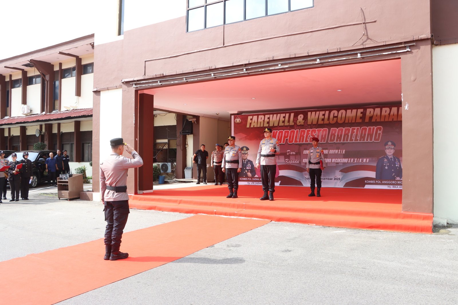 Selanjutnya dilaksanakan farewell parade berupa apel bersama sebagai bentuk penghormatan dan apresiasi atas dedikasi serta pengabdian pejabat lama selama menjabat sebagai Kapolresta Barelang. Apel tersebut diikuti oleh Wakapolresta Barelang, para pejabat utama, Kapolsek jajaran, seluruh personel, serta PNS Polresta Barelang.
