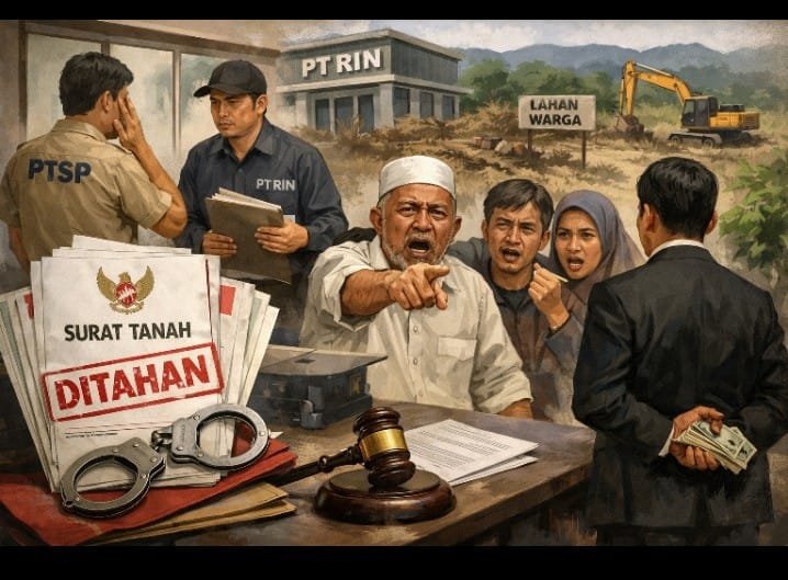 sumber : Ilustrasi AI Focusitm.news|Natuna — Polemik dugaan penahanan surat tanah (alas hak) milik warga Desa Sedanau Timur, Kecamatan Bunguran Batubi, Kabupaten Natuna, kian memanas. Publik kini mempertanyakan kapasitas dan kewenangan PT RIN yang disebut-sebut menyimpan dokumen penting milik masyarakat, padahal perusahaan tersebut tidak memiliki kewenangan hukum untuk menahan atau menguasai surat tanah warga.