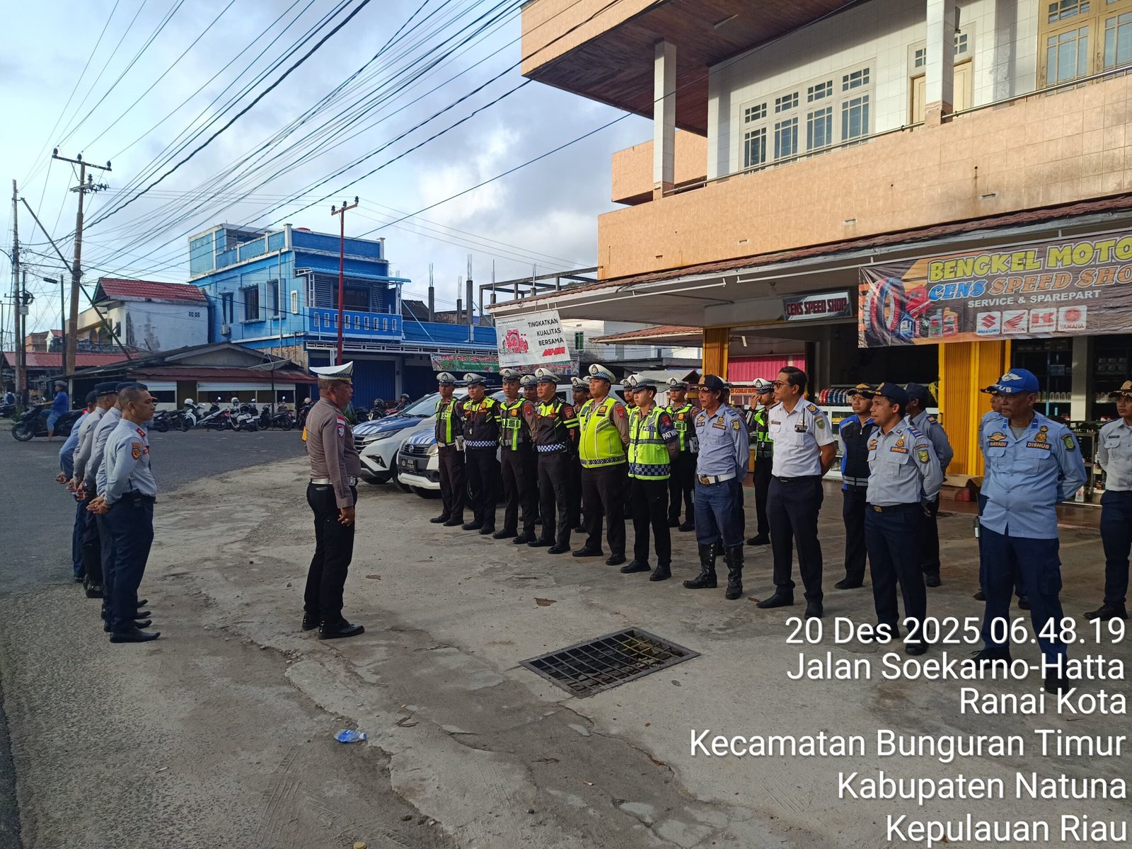 Focusitm.news | Natuna – Satuan Lalu Lintas Polres Natuna bersama Dinas Perhubungan Kabupaten Natuna melaksanakan apel gabungan sebagai bentuk kesiapan pengamanan dan pengaturan arus lalu lintas pada kegiatan Upacara Penyerahan Surat Keputusan Pegawai Pemerintah dengan Perjanjian Kerja (PPPK) di Kabupaten Natuna. Kegiatan apel gabungan ini dilaksanakan pada Sabtu pagi, 20 Desember 2025, sekitar pukul 06.30 WIB.
